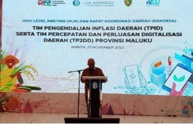 Ambon,Wartamaluku.com – Kepala Perwakilan Bank Indonesia (BI) Provinsi Maluku, Mohamad Latif, menegaskan komitmen BI memperkuat ketahanan pangan sekaligus mempercepat digitalisasi transaksi daerah. Hal ini disampaikan usai kegiatan High Level Meeting (HLM) dan Rakorda TPID serta TP2DD yang digelar BI Maluku, Selasa (25/11/2025).