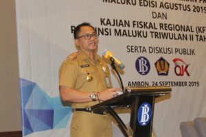 Hal tersebut disampaikan gubernur dalam sambutan tertulis yang disampaikan Sekretaris Daerah Maluku, Kasrul Selang saat membuka dengan resmi acara diseminasi Laporan Perekonomian Provinsi (LPP) Edisi Agustus 2019 dan Kajian Fiskal Regional serta Diskusi Publik Industri Jasa Keuangan (IJK) yang diselenggarakan oleh Kantor Perwakilan Bank Indonesia (BI) Provinsi Maluku, di Hotel Santika, Ambon, Selasa 24/9/2019.