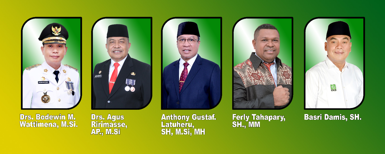 Ke- 5 figur ini yakni Drs. Bodewin M Wattimena, Pejabat Walikota Ambon, Drs. Agus Ririmase ,AP, M.Si, Sekot Kota Ambon, Anthony Gustaf .Latuheru,SH,M.Si,MH Mantan Sekot Kota Ambon, Ferly Tahapary,SH,MM , selanjutnya Basri Damis,SH, Politisi Partai Kebangkitan Bangsa Yang juga Ketua DPW PKB Maluku.