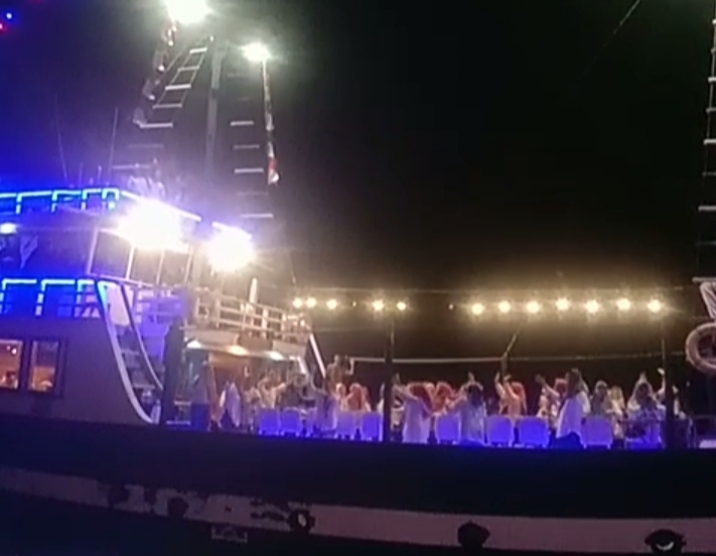 Dengan alunan musik dan pemandangan laut yang menawan, para peserta menikmati suasana malam di atas kapal Phinisi KLM Ghinayah.