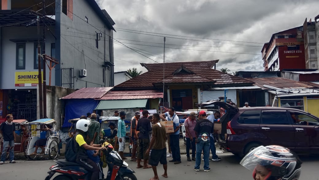Kegiatan berbagi kasih di Jumat barokah ini terfokus pada lokasi pantai Losari Ambon, berbagi dengan kelompok tukang becak, sapu jalan, pengemis, dan bahkan tukang ojek yang melintas di arah jalan Pante Losari Ambon siang ini pukul 11 : 0 Wit.