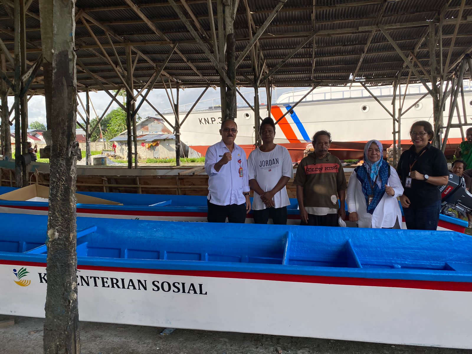 Penyerahan bantuan dilaksanakan di kantor pembuatan perahu fiber, CV. Fajar Bahari Maritim, Desa Laha, Kecamatan Teluk Ambon, Rabu (14/8/24) dihadiri Kepala Dinas Sosial Kota Ambon,Sirjhon Slarmanat.