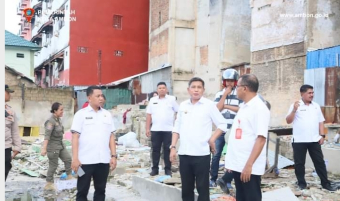 Ambon, Wartamaluku.com – Penjabat Walikota Ambon Bodewin Wattimena, meninjau pembersihan lahan Pasar Gambus yang telah dikosongkan secara sukarela .