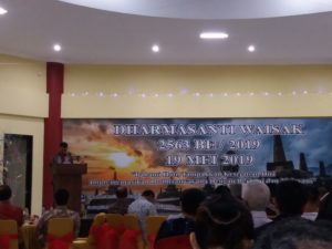 “Untuk itu, melalui waisak 2563 tahun 2019 ini saya berharap agar prinsip melayani dapat kedepankan, apalagi dalam situasi perpolitikan masional yang agak memanas. Kami juga harapkan agar Tri Suci Waisak menjadi bahan renungan bagi kita semua”, ungkapnya.