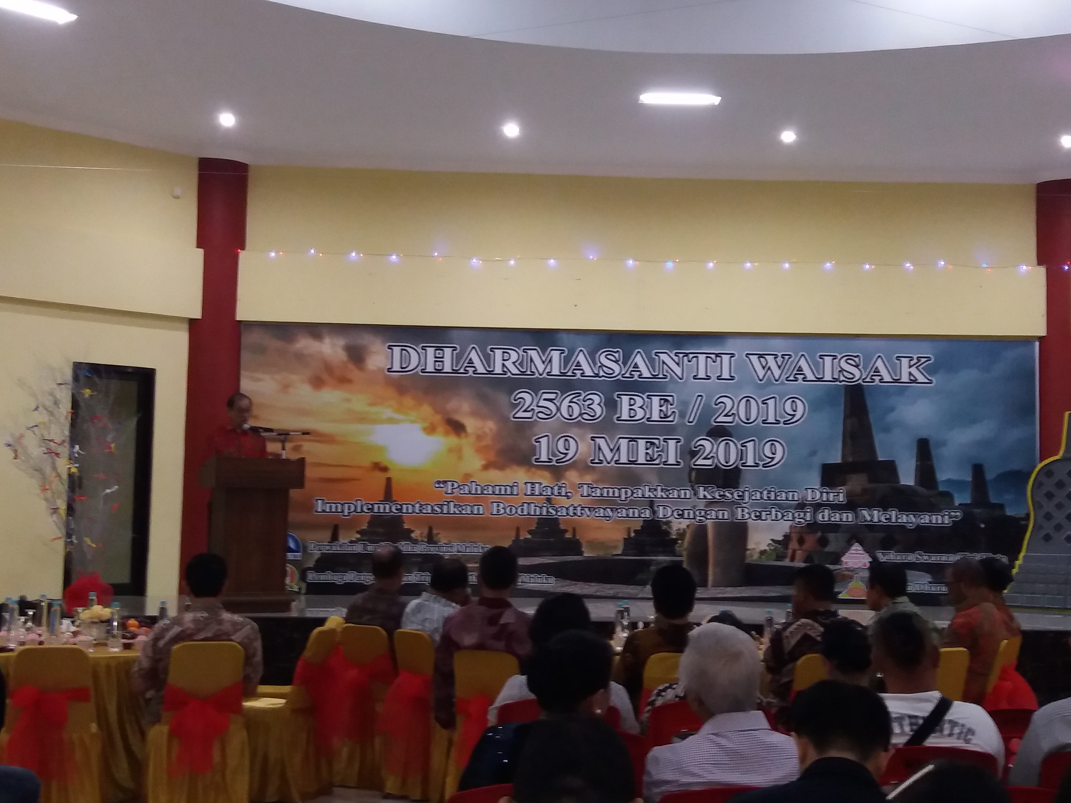 Tahun 2019 ini Hari Tri Suci Waisak mengusung tema, ‘Pahami Hati, Tampakan Kesejatian Diri, Implementasikan Bodhisattvayana dengan Berbagi dan Melayani’.